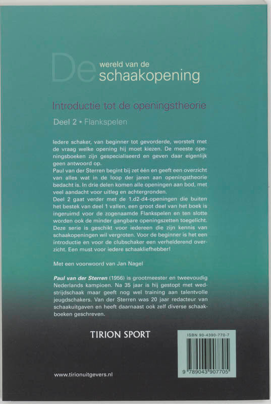 Flankspelen is het tweede deel van de driedelige serie verhelderende schaakboeken De wereld van de schaakopening. Welke openingszetten zijn goed en welke niet? Welke opening is voor mij het meest geschikt? Is er nog meer bekend dan de openingen die ik altijd speel? Elementaire of specialistische vragen, in dit boek worden ze allemaal beantwoord. Dit deel gaat verder met de 1.d2-d4-openingen die buiten het bestek van deel 1 vielen. Dan worden de zogenoemde Flankspelen en tenslotte ook de minder gangbare zetten toegelicht. Voor de beginner is dit een introductie, voor de clubschaker een verhelderend overzicht.