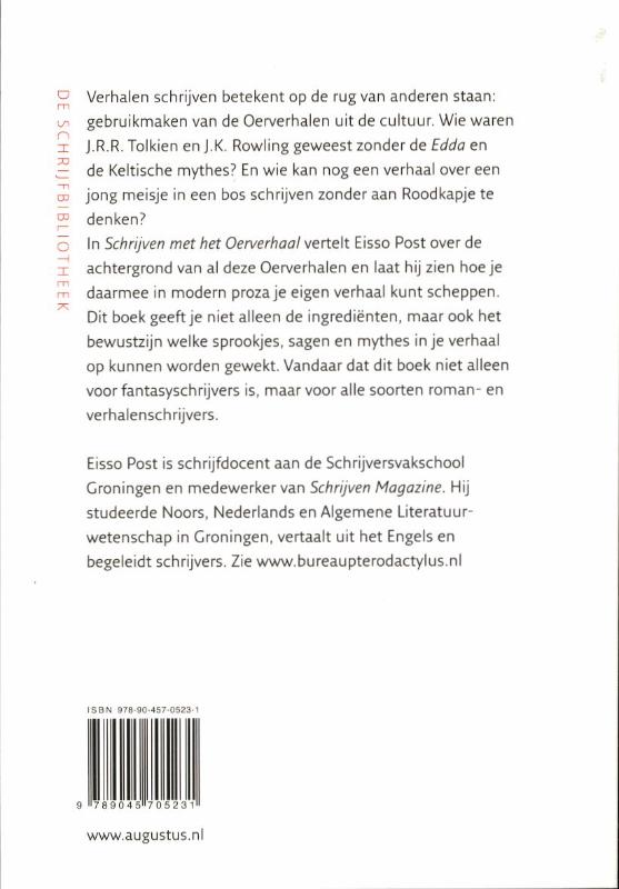 In Schrijven met het oerverhaal vertelt Eisso Post de achtergrond van al deze oerverhalen en laat hij zien hoe je daarmee in modern proza je eigen verhaal kunt scheppen. Dit boek geeft je niet alleen de ingrediënten, maar ook het bewustzijn welke sprookjes, sagen en mythes in je verhaal op worden gewekt. Vandaar dat dit boek niet alleen voor Fantasyschrijvers is, maar voor alle soorten roman- en verhalenschrijvers.