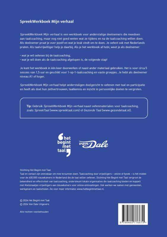 Tip: Gebruik SpreekWerkboek Mijn verhaal naast oefenmaterialen voor taalcoaching, zoals SpreekTaal (www.spreektaal.com) of Gezonde Taal (www.gezondetaal.nl).