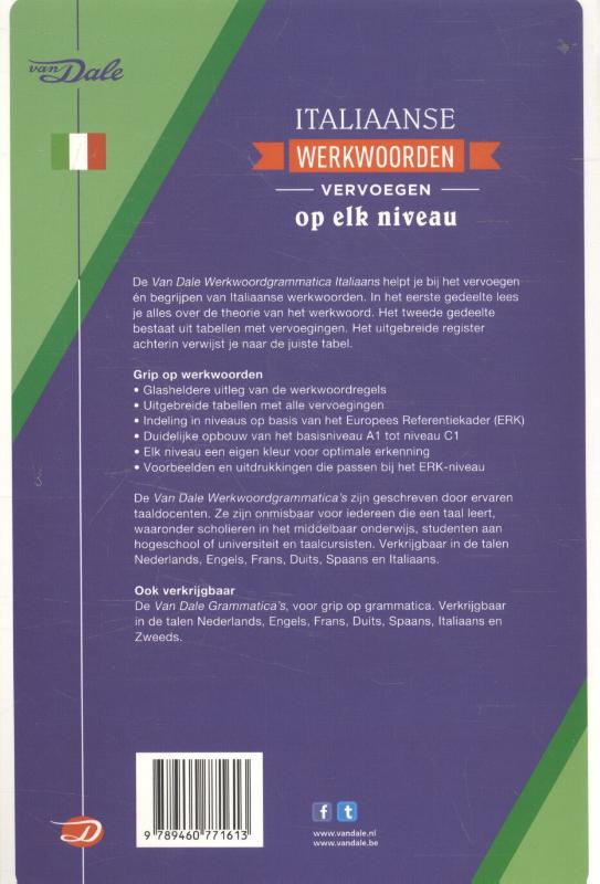 De Van Dale Werkwoordgrammatica's zijn geschreven door ervaren taaldocenten. Ze zijn onmisbaar voor iedereen die een taal leert, waaronder scholieren in het middelbaar onderwijs, studenten aan de hogeschool of universiteit en taalcursisten. Verkrijgbaar in de talen Nederlands, Engels, Frans, Duits, Spaans en Italiaans.