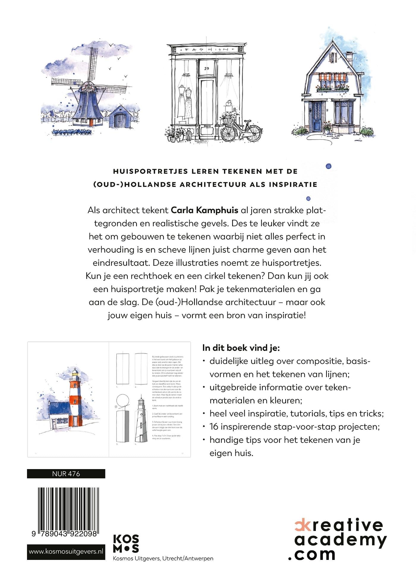Laat je inspireren door de (oud-)Hollandse architectuur en teken de leukste huisportretjes! Als architect tekent Carla Kamphuis al jaren strakke plattegronden en realistische gevels. Maar in je vrije tijd is het des te leuker om de teugels te laten vieren en huizen te tekenen die niet perfect in verhouding zijn – en die juist hun charme ontlenen aan een scheve lijn.