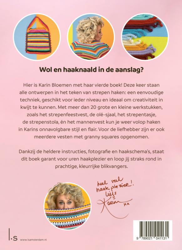 Karin Bloemen is niet meer weg te denken uit het Nederlandse haaklandschap. Na drie succesvolle boeken over granny squares en cirkels, draaien de ontwerpen nu om strepen. Geschikt voor beginnende hakers vanwege de eenvoudige haaktechniek, en de projecten zijn ideaal om kleur en creativiteit in kwijt te kunnen. Met twintig grote en kleine werkstukken zoals vesten, tassen, een topje, sjaals en stola’s, én ook projecten voor heren, in Karins onnavolgbare stijl en flair, met stap voor stap instructies en duidelijke fotografie is dit boek wederom het haakboek dat iedere haakster wil hebben en dat niet mag ontbreken in de Haken à la Bloemen-verzameling.
