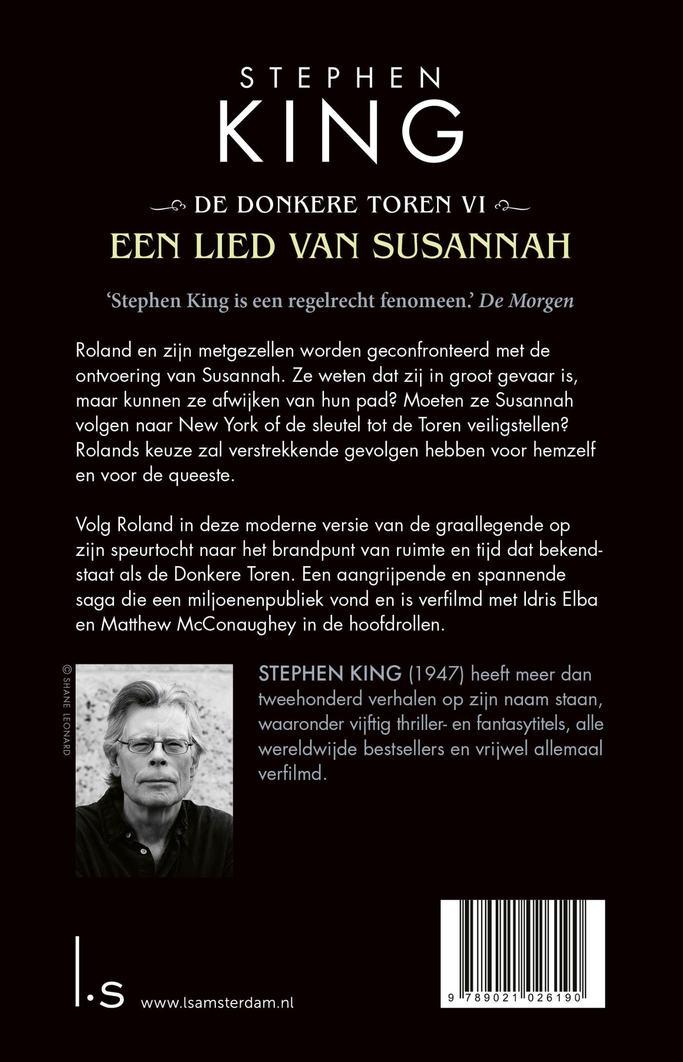 "Een lied van Susannah is boek 6 van Stephen Kings epische fantasy-serie, de Donkere Toren. De serie is Stephen Kings magnum opus en een van de grootste epische successen van de afgelopen twintig jaar.