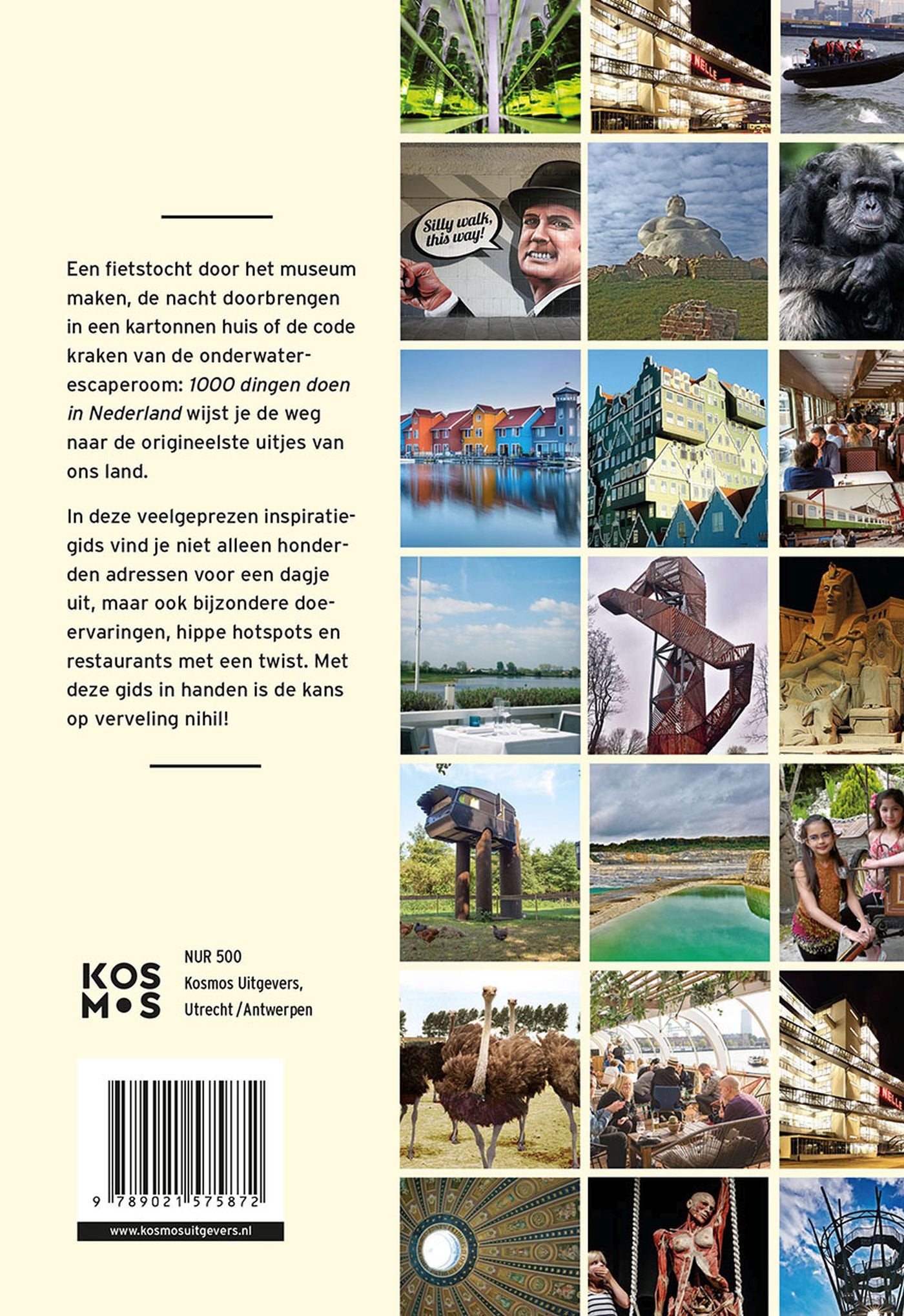 Met '1000 dingen doen in Nederland' ontdek je ons land op z’n leukst! Dit heerlijke inspiratieboek van Jeroen van der Spek staat barstensvol originele uitjes in eigen land – van museumbezoek tot avontuurlijke activiteiten en van funshoppen tot coole uitstapjes met kids. Overzichtelijk gerangschikt per provincie en afgewisseld met top 10-lijstjes van filmlocaties, natuurgebieden en de mooiste terrassen… Een must-have voor iedereen die er graag op uitgaat.