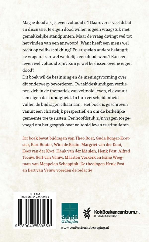 In ’12 artikelen over voltooid leven’ onder redactie van Henk Post en Bert van Veluw worden twaalf vragen besproken rond het levenseinde, o.a.: Wat houdt de term ’voltooid leven’ eigenlijk in? Wat kom je tegen als pastor wanneer mensen geconfronteerd worden met vragen over hun al of niet voltooide leven?