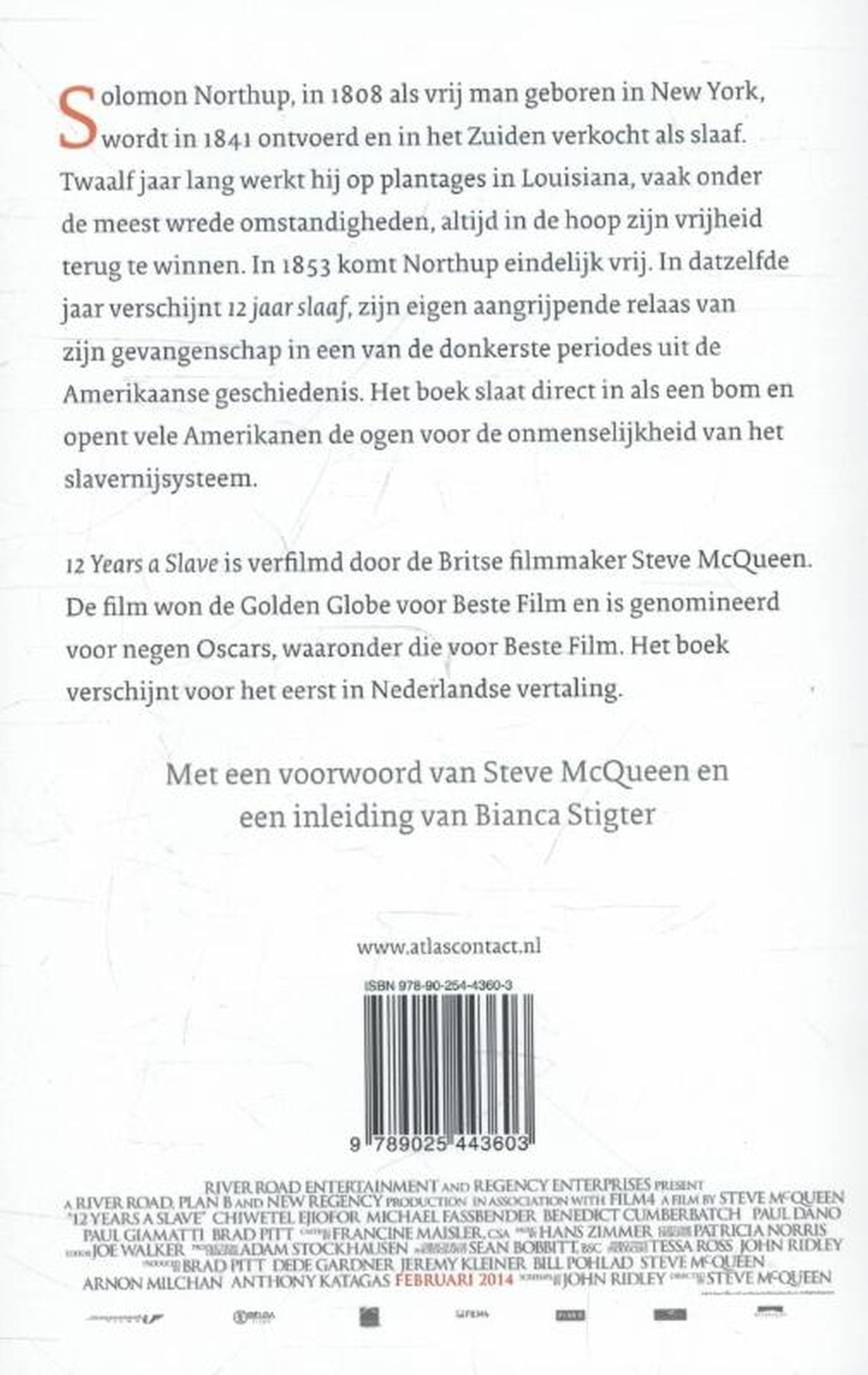Solomon Northup is een vrij man, woonachtig in New York. Wanneer hij wordt ontvoerd en als slaaf wordt verkocht, gedrogeerd, geslagen, een nieuwe naam gegeven en weggevoerd van zijn vrouw en kinderen, vreest Solomon te sterven als hij zijn ware identiteit onthult. Dit is het waargebeurde verhaal van zijn twaalf jaar als slaaf: over de eindeloze wreedheid, de dagelijkse vernederingen en de constante angst, maar ook over de manier waarop hij en zijn medeslaven probeerden hun menselijkheid te bewaren en te overleven.
