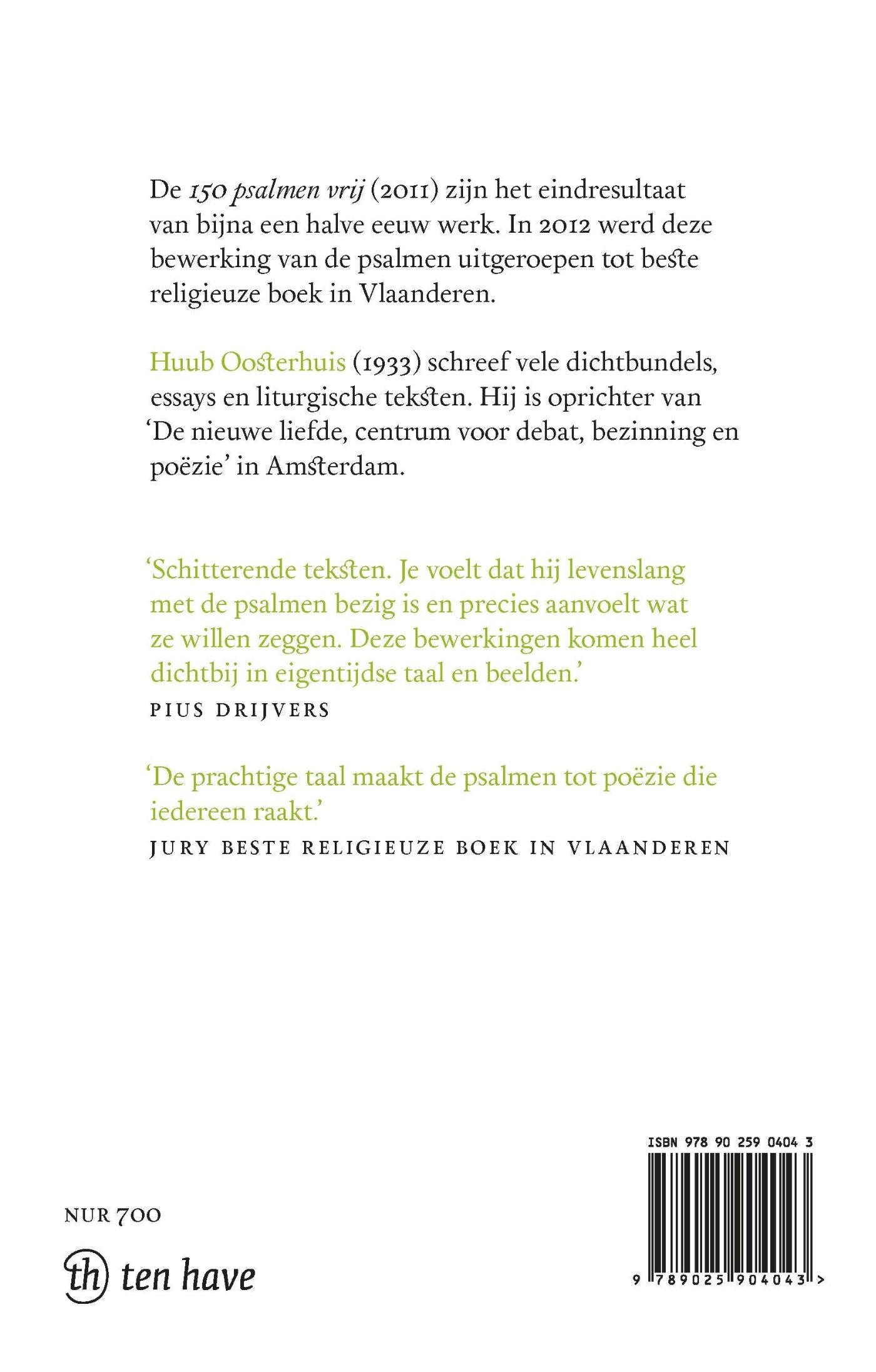 In 1962 begon priester-dichter Huub Oosterhuis aan de vertaling van de psalmen, eerst samen met Michel van der Plas en de exegeet Pius Drijvers. Hun ideaal: ook in het Nederlands moesten de psalmen poëtisch en zingbaar zijn. Bijna vijftig jaar na dato is het zover: alle 150 psalmen zijn door Oosterhuis vertaald en verschijnen in deze feestelijke, fraai vormgegeven editie! De God van de psalmen is in deze vertaling `vriend voor het leven .