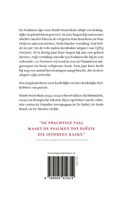 Huub Oosterhuis werkte bijna een halve eeuw aan een eigentijdse versie van de 150 psalmen. Zijn ideaal was een vrije, poëtische herdichting, die ook zingbaar moest zijn. In 2012 werd 150 psalmen vrij uitgeroepen tot beste religieuze boek in Vlaanderen. Er zijn inmiddels meer dan 15.000 exemplaren van dit boek verkocht.