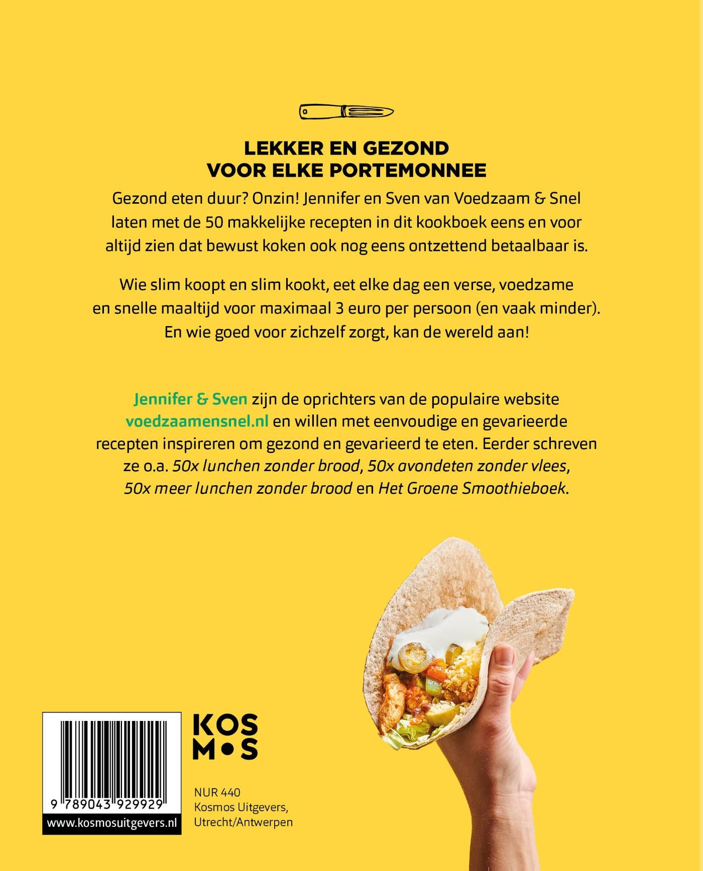 Gezond eten duur? Onzin! Jennifer en Sven van het succesvolle platform Voedzaam & Snel laten met de 50 makkelijke recepten uit hun nieuwste kookboek 50x lekker gezond & betaalbaar eens en voor altijd zien dat bewust koken ook nog eens ontzettend betaalbaar is.
