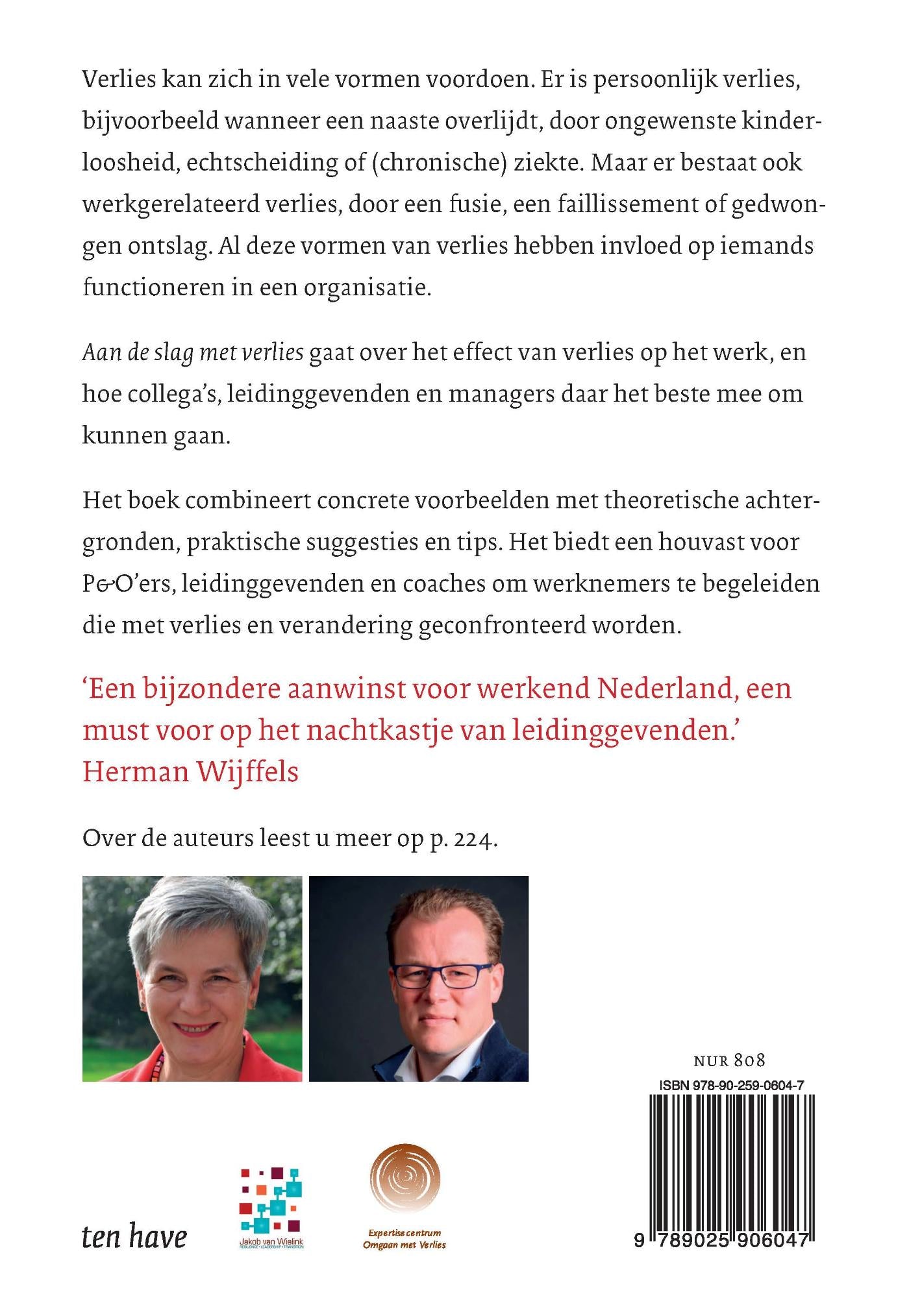 Riet Fiddelaers-Jaspers en Jakob van Wielink schrijven toegankelijk over de impact van een (persoonlijk) verlies op de werkvloer, door fusie, ontslag of overlijden. Maar ook zaken als ongewenste kinderloosheid, echtscheiding of ziekte kunnen het functioneren van iemand belemmeren. Dit boek combineert voorbeelden met theorie en geeft suggesties en tips en is een handleiding voor het begeleiden en coachen van werknemers.
