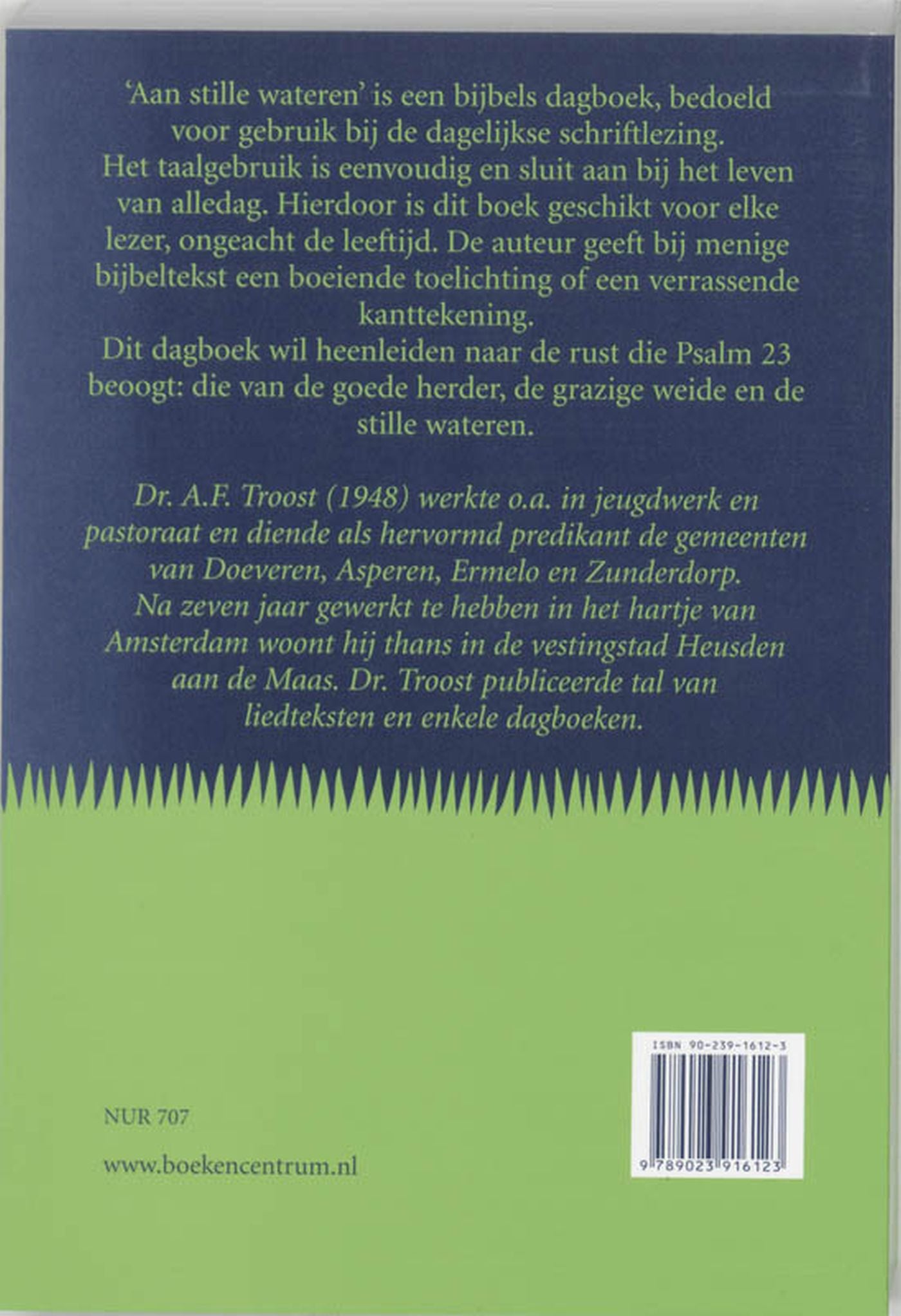Van dit dagboek zijn er inmiddels meer dan 100.000 verkocht en nog steeds is er grote vraag naar. Niet verwonderlijk. Ds. A.F. Troost weet zo te schrijven dat zijn dagelijkse meditaties een heel breed publiek aanspreken. Hiermee is Aan stille wateren een dagboek voor elke lezer, ongeacht leeftijd.