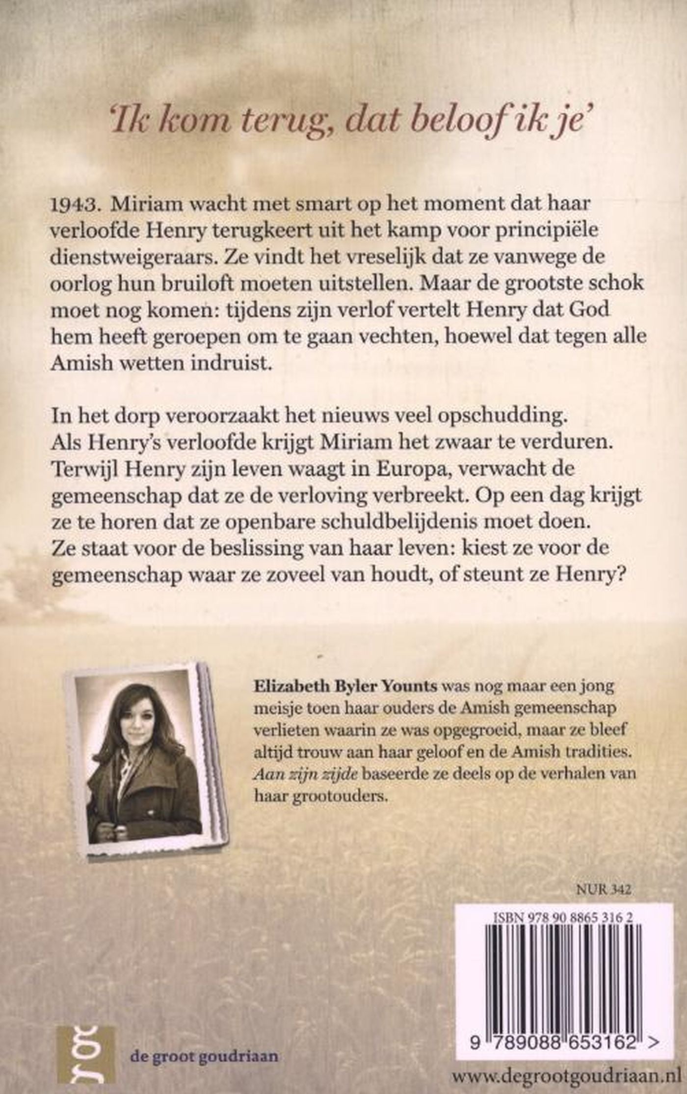 Elizabeth Byler Younts schreef met Aan zijn zijde een Amish roman met een nieuwe insteek: geloven in tijden van oorlog.