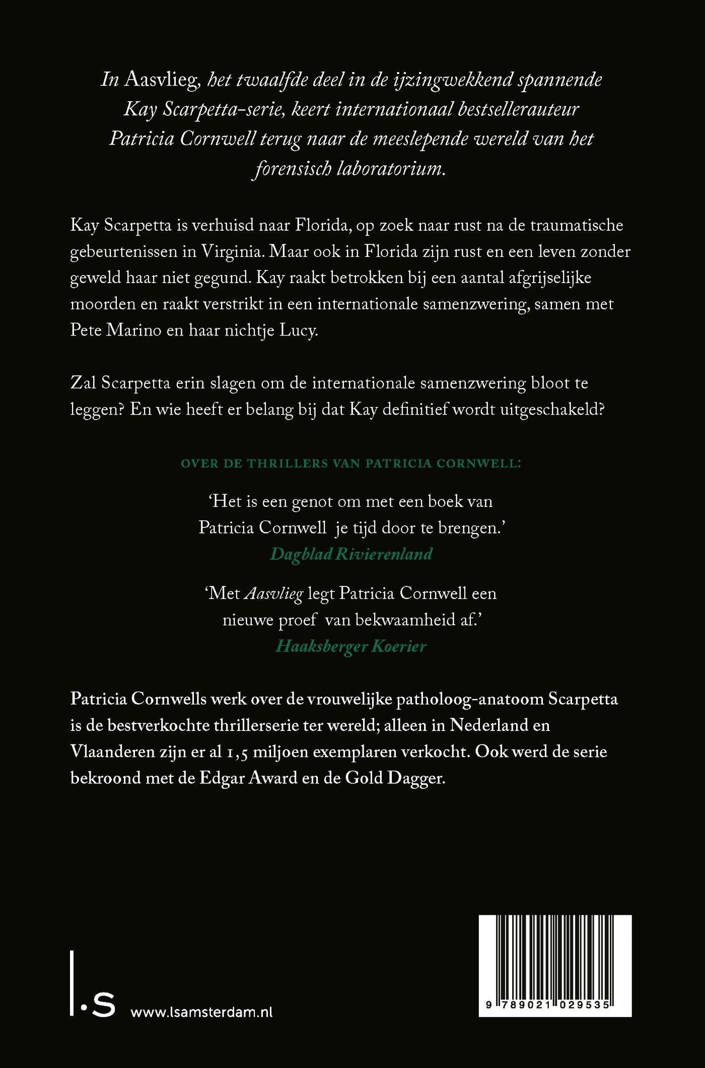 (POD) Aasvlieg is het twaalfde boek uit de bloedstollende bestsellerserie rond patholoog-anatoom Kay Scarpetta van auteur Patricia Cornwell. Deze serie, bestaande uit meer dan 20 bloedstollende crimethrillers, betekende Patricia Cornwells doorbraak als grondlegger van de pathologisch-anatomische thriller.
