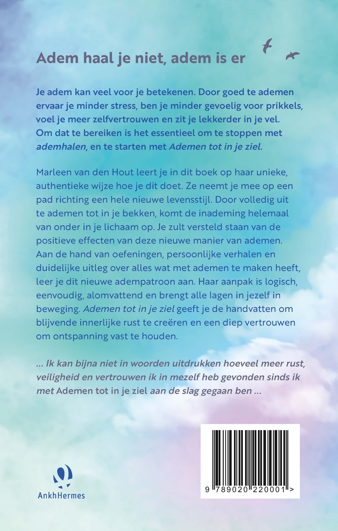 Ademen tot in je ziel helpt je te doorgronden hoe je adem werkt en hoe die jou kan ondersteunen om lekker in je vel te zitten. Met behulp van praktische oefeningen kom je in contact met je onderbewuste patronen en leer je door bewustzijn steeds vrijer te ademen en te leven. Je krijgt onder andere oefeningen voor de psoas en nervus vagus in de vorm van Biostretches en oefeningen voor diepe stilte en om betere keuzes te maken.