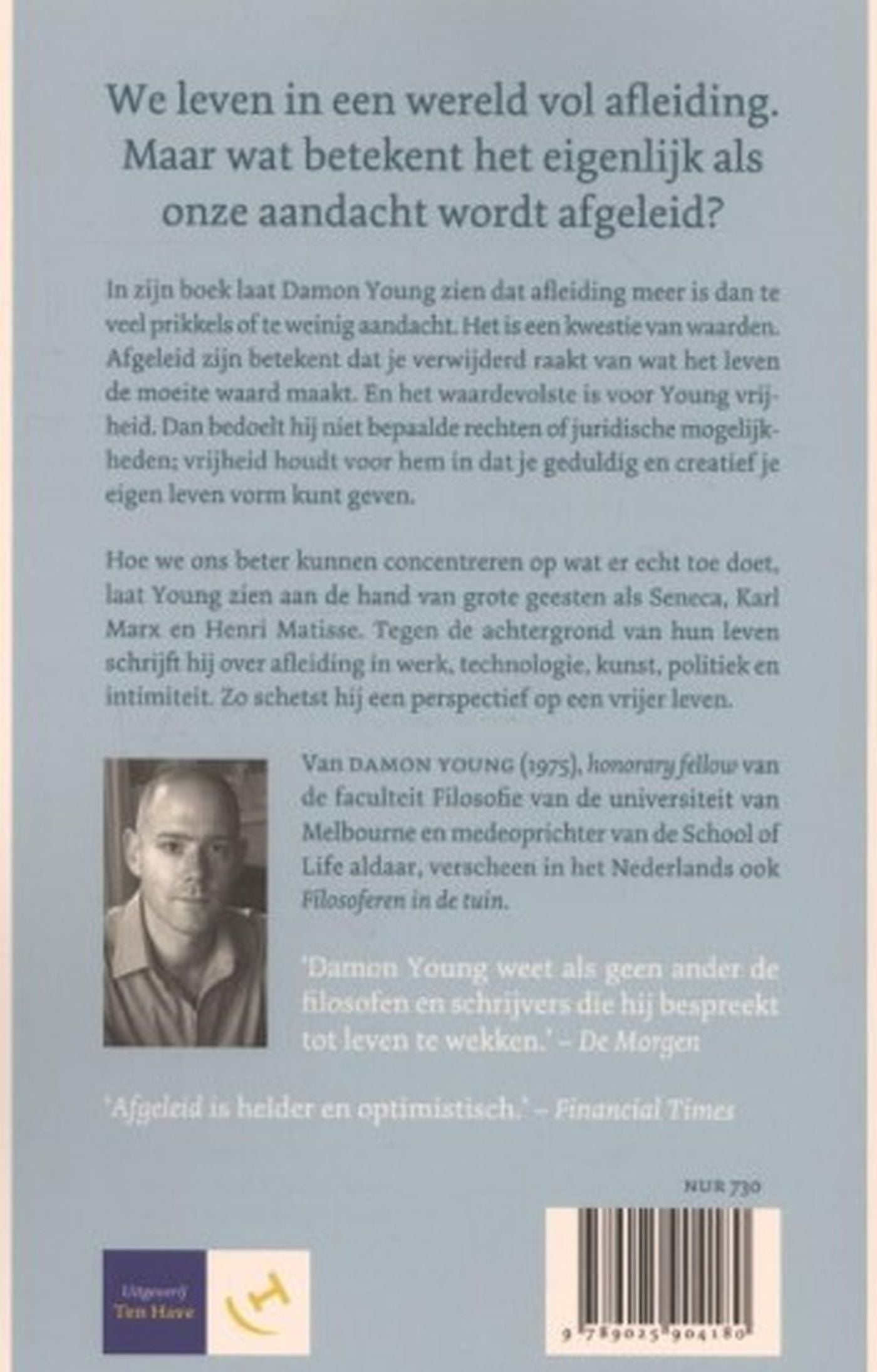 In ‘Afgeleid’ behandelt de Australische publieksfilosoof Damon Young een voor iedereen zeer herkenbaar “probleem”. Voortdurend worden we afgeleid – iedereen kent dat gevoel. Niet alleen door e-mails en social media, maar ook door mooiere banen, mannen of vrouwen dan de onze. In ‘Afgeleid’ betoogt Damon Young dat dit meer is dan een kwestie van te veel prikkels. Het is een kwestie van waarden.