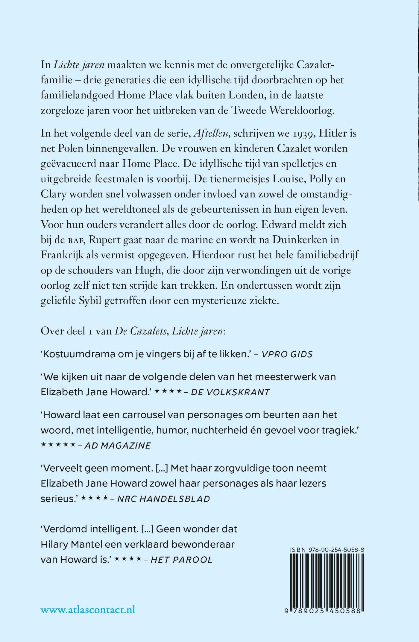 In ‘Aftellen’, het tweede deel in de Cazalet-serie van Jane Howard, schrijven we 1939, Hitler is net Polen binnengevallen. De vrouwen en kinderen Cazalet worden geëvacueerd naar Home Place. De idyllische tijd van spelletjes en uitgebreide feestmalen is voorbij. De tienermeisjes Louise, Polly en Clary worden snel volwassen onder invloed van zowel de omstandigheden op het wereldtoneel als de gebeurtenissen in hun eigen leven. Voor hun ouders verandert alles door de oorlog. Edward meldt zich bij de RAF, Rupert gaat naar de marine en wordt na Duinkerken in Frankrijk als vermist opgegeven. Hierdoor rust het hele familiebedrijf op de schouders van Hugh, die door zijn verwondingen uit de vorige oorlog zelf niet ten strijde kan trekken. En ondertussen wordt zijn geliefde Sybil getroffen door een mysterieuze ziekte.