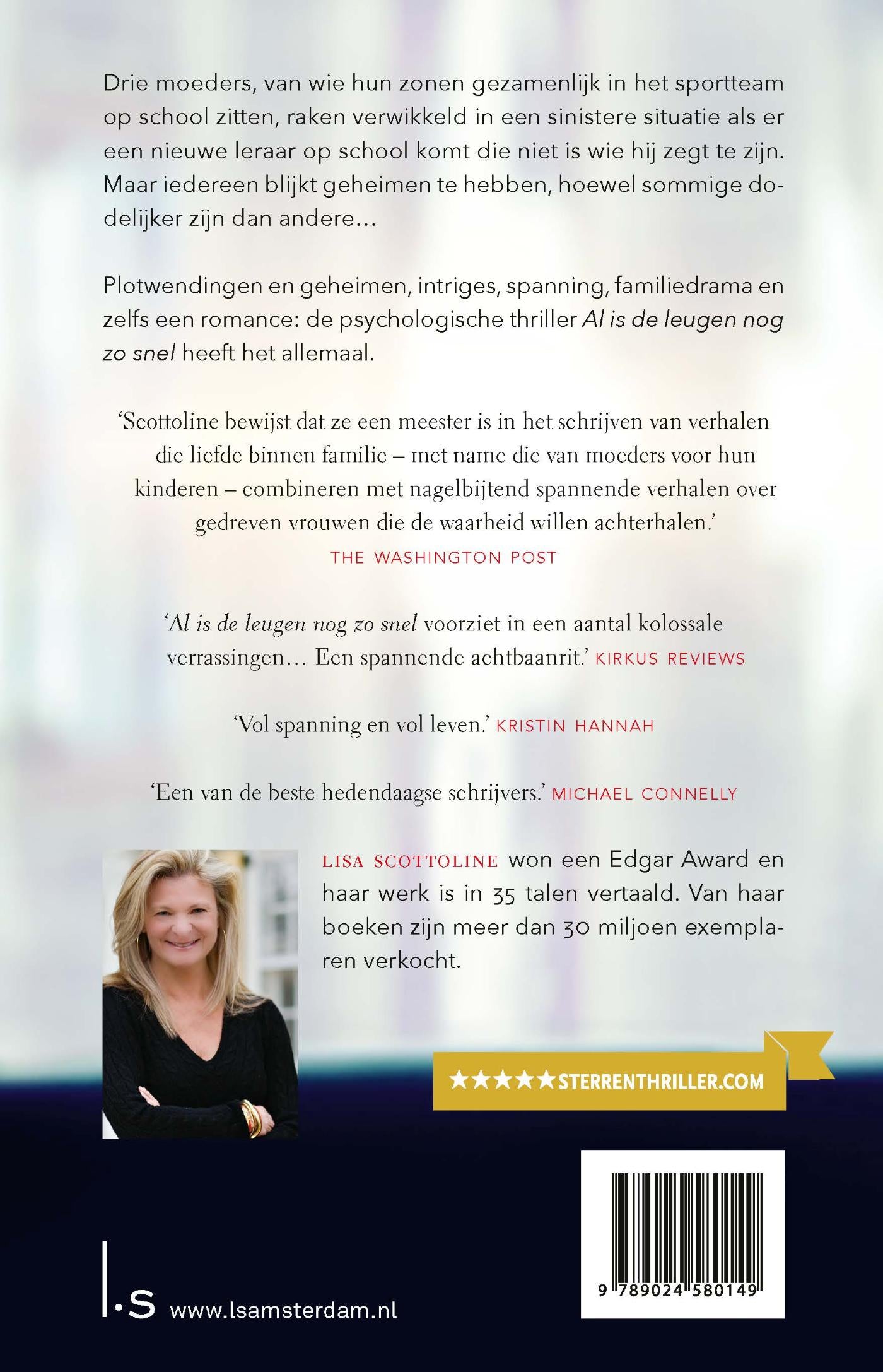 Al is de leugen nog zo snel van Lisa Scottoline is een emotionele, psychologische thriller voor iedereen die de boeken van Kristin Hannah verslindt.
