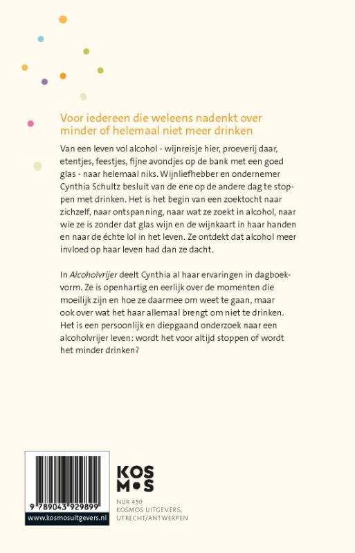 Van een leven vol alcohol - wijnreisje hier, proeverij daar, etentjes, feestjes, fijne avondjes op de bank met een goed glas – naar helemaal niks. Wijnliefhebber en ondernemer Cynthia Schultz besluit van de ene op de andere dag te stoppen met drinken.