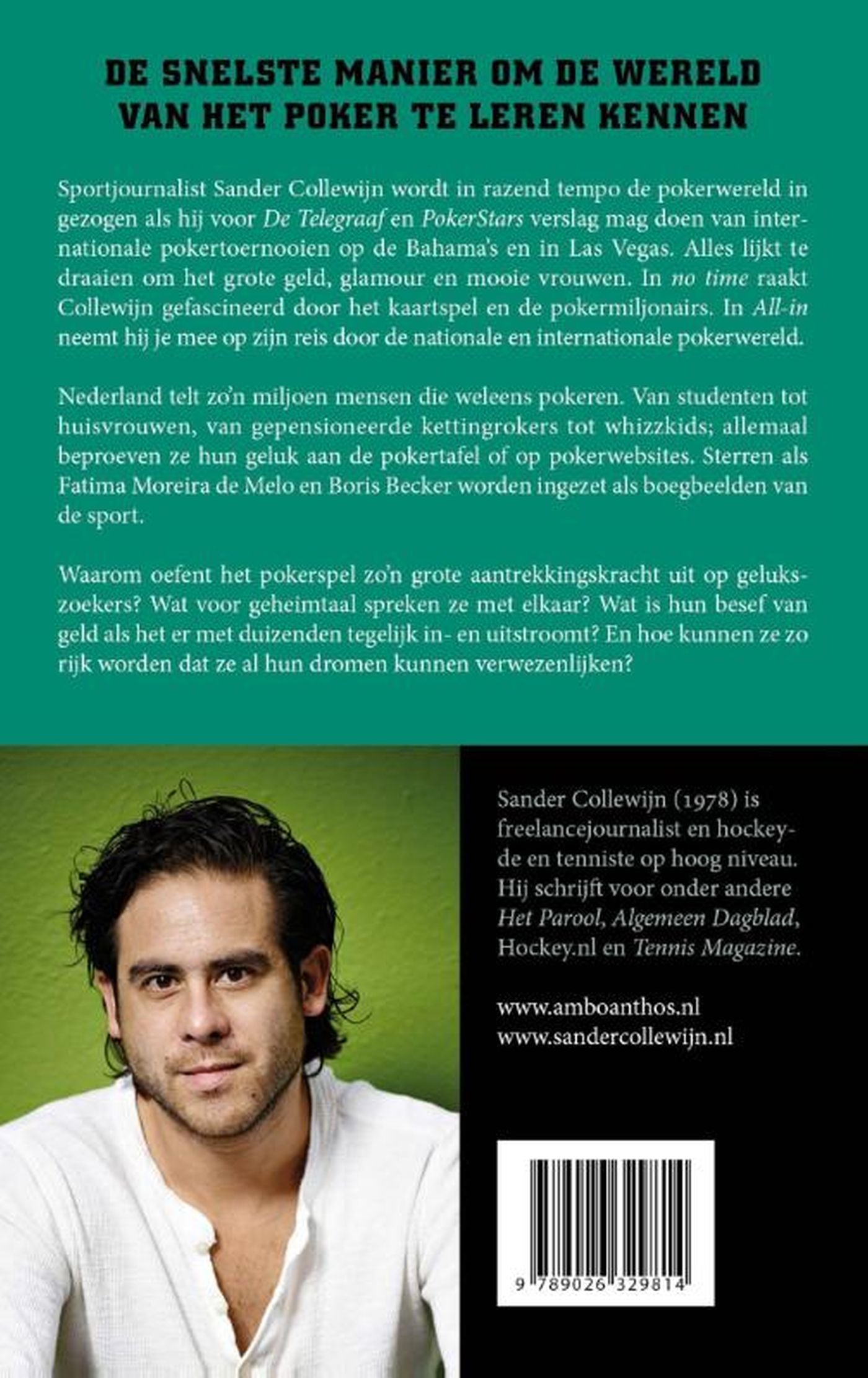 Sportjournalist Sander Collewijn beschrijft in 'All-in' zijn reis door de wonderlijke wereld van het poker. Hij gaat voor De Telegraaf en Pokerstars verslag doen van internationale pokertoernooien op de Bahama’s en in Las Vegas en raakt gefascineerd door het kaartspel en de pokermiljonairs.