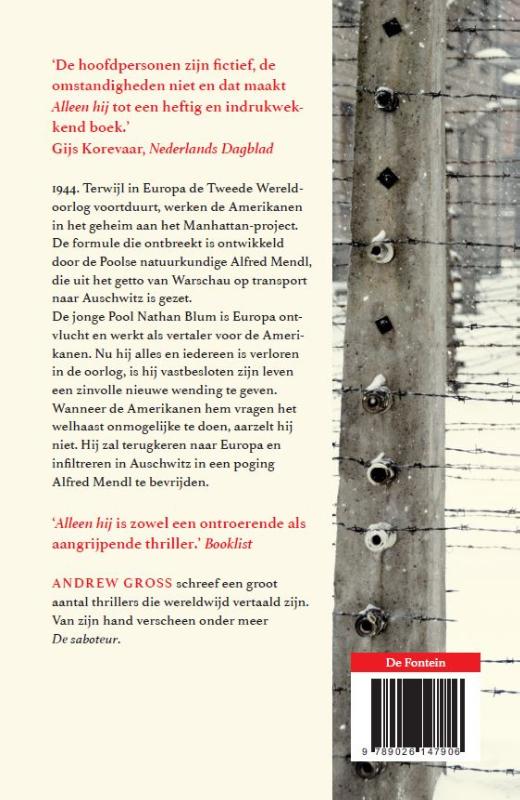 ‘Gross heeft de beschrijvingen van het kampleven opgetekend naar de verhalen van zijn schoonvader die in Auschwitz vastzat. Waar de hoofdpersonen fictie zijn, zijn de setting en veel van de personages gebaseerd op historische feiten. Voeg daaraan toe het inlevingsvermogen, de actie en de spanning en ‘Alleen hij’ is zowel een ontroerende als aangrijpende thriller.’ Booklist