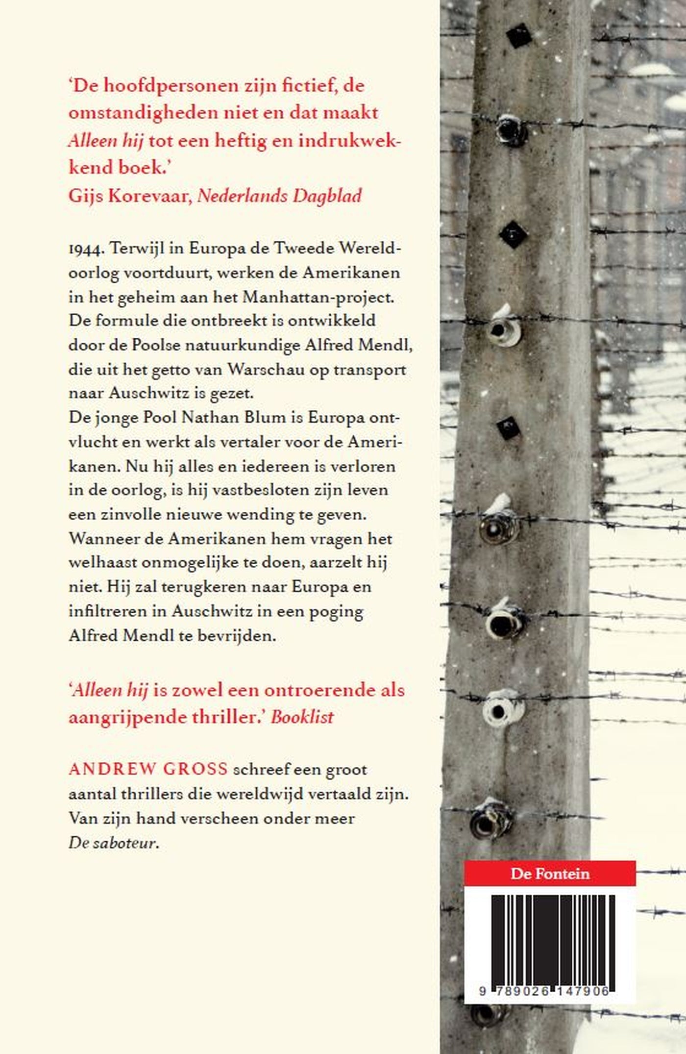 Andrew Gross heeft met ‘Alleen hij’ (The One Man) een bloedstollende en aangrijpende thriller geschreven waarin de gruwelen van de Tweede Wereldoorlog in het algemeen en die van Auschwitz in het bijzonder centraal staan.