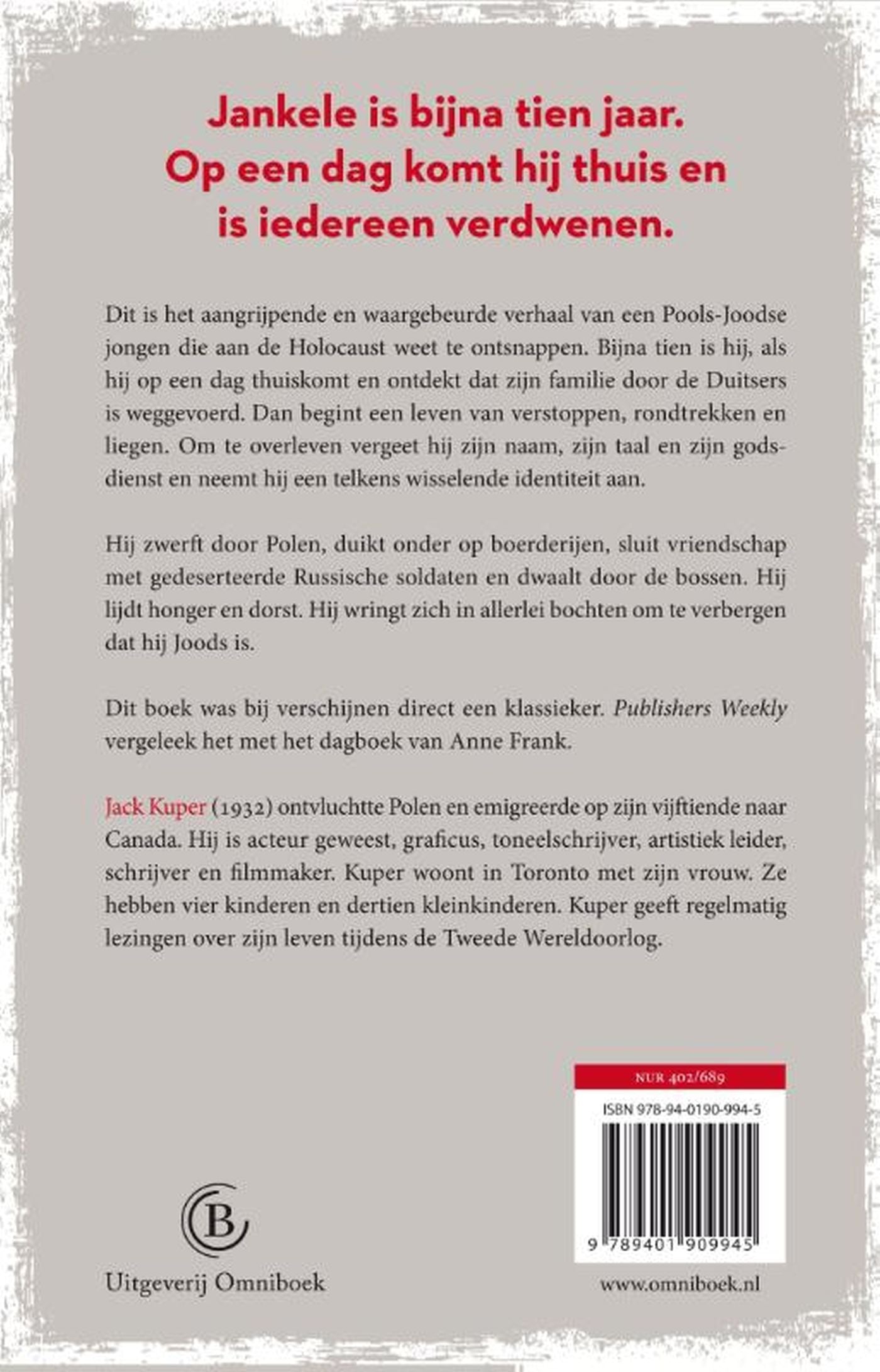 "Alleen op de vlucht" is het aangrijpende, waargebeurde verhaal van een Joodse jongen, die aan de Holocaust weet te ontsnappen. Tien jaar is hij pas, als hij op een dag thuiskomt en ontdekt dat zijn familie door de Duitsers is weggevoerd. Dan begint een leven van verstoppen, rondtrekken en liegen. Om te overleven vergeet hij zijn naam, zijn taal en zijn godsdienst en neemt hij een telkens wisselende identiteit aan. Een aangrijpend en waargebeurd verhaal, dat door Publishers Weekly wordt vergeleken met het dagboek van Anne Frank.