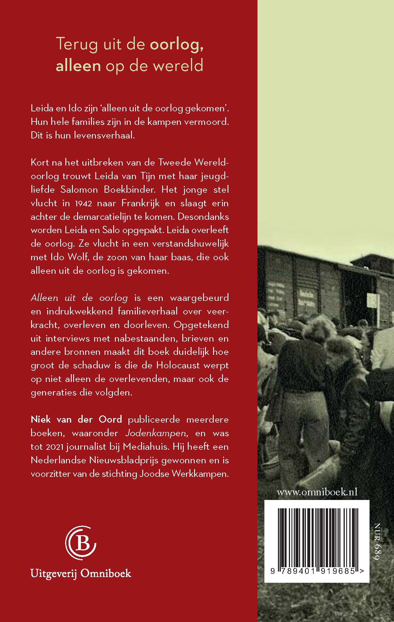 In ‘Alleen uit de oorlog’ reconstrueert Niek van der Oord hun levensverhaal, waaruit blijkt hoe diep de sporen zijn die de Holocaust nalaat in de levens van de betrokkenen, maar ook in dat van volgende generaties. Van der Oord baseert zich op interviews met nabestaanden, brieven en andere bronnen.