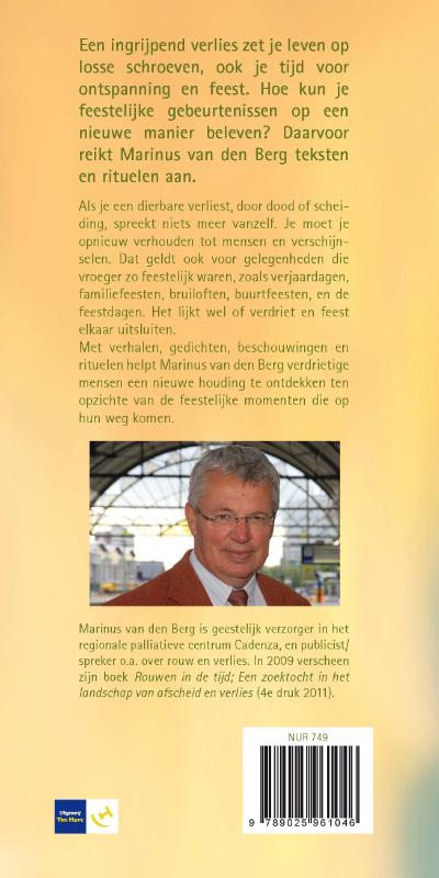 Marinus van den Berg laat echter zien dat verdriet het feest kan insluiten. Met zijn verhalen, gedichten, beschouwingen en rituelen helpt hij verdrietige mensen een nieuwe houding te ontdekken ten opzichte van hun vrije tijd en de feestelijke momenten die onherroepelijk op hun weg komen.