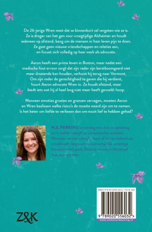 Wanneer emoties groeien en grenzen vervagen, moeten Aaron en Wren beslissen welke risico's de moeite waard zijn om te nemen. Is het beter om liefde te verliezen dan om nooit lief te hebben gehad? 'Als ik je vergeet' is het emotionele debuut van N.S. Perkins, perfect voor iedereen die houdt van romance met diepgang.