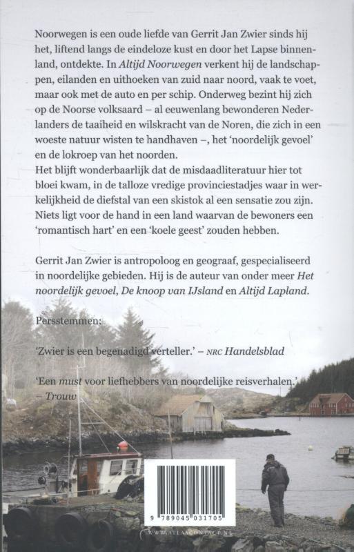 Noorwegen is een oude liefde van Gerrit Jan Zwier. Vele anderen hebben inmiddels de charme van het koele, stille noorden gevonden, waar de grootse natuur niet tot tuintjes en parkjes is getemd. In Altijd Noorwegen verkent Zwier de landschappen, eilanden en uithoeken van zuid naar noord, vaak te voet, maar ook met de auto en per schip.