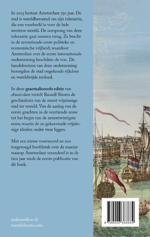 Op 27 oktober 2024 beginnen de festiviteiten rondom de 750ste verjaardag van de stad Amsterdam. In deze geactualiseerde editie van Amsterdam vertelt Russell Shorto de geschiedenis van de meest vrijzinnige stad ter wereld. Van de aanleg van de eerste grachten in de veertiende eeuw tot het begin van de eenentwintigste eeuw, wanneer de zo gekoesterde vrijzinnige idealen onder vuur liggen.