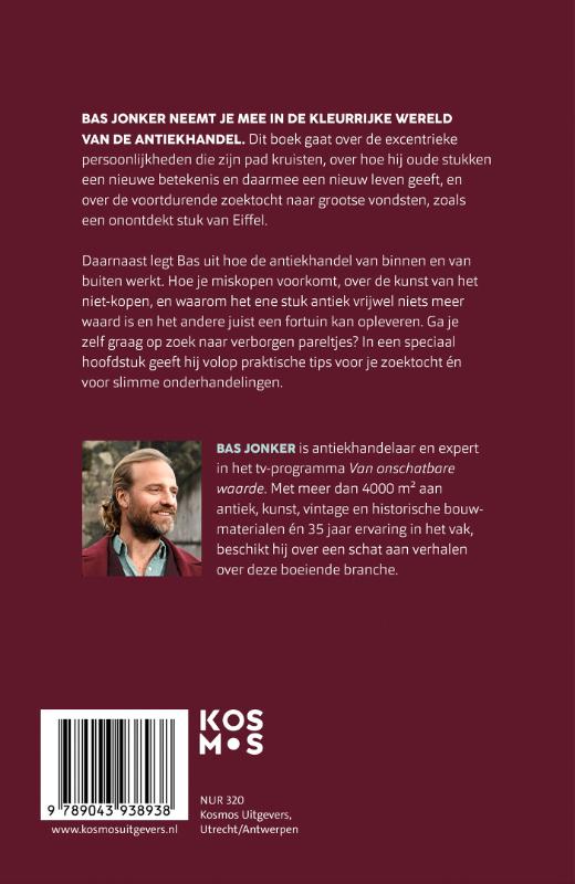 Bas Jonker, antiekhandelaar en expert bij Van Onschatbare Waarde, is eigenaar van Piet Jonker Architectural Antiques, een bedrijf van ruim 4.000 m² vol antiek, kunst, vintage en historische bouwmaterialen. Zijn passie, kennis en kleurrijke verhalen maken dit boek een onmisbare gids voor iedereen die geïnteresseerd is in antiek en de kunst van verzamelen.