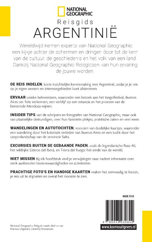 National Geographic Reisgids Argentinië is een exclusieve gids met sublieme fotografie die u meeneemt naar de bekende en minder bekende bezienswaardigheden. De experts van National Geographic nemen een kijkje achter de schermen en dringen door tot de kern van de cultuur, de geschiedenis en bijzondere plekjes van het land.