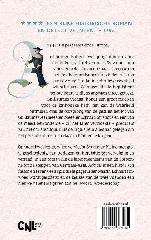 Askruis is een historisch fresco maar ook een spirituele en dramatische pageturner waarin Eckharts woorden en de keuzes van onze twee hoofdpersonen een nieuwe betekenis geven aan het woord ‘broederschap’.