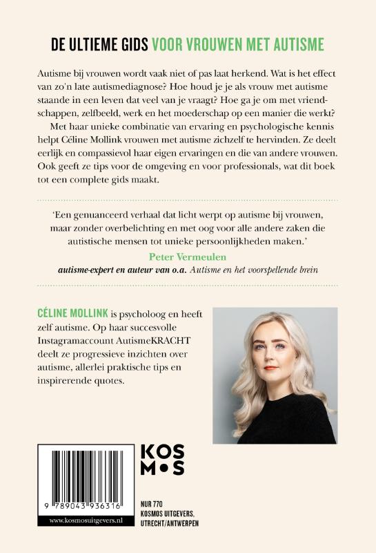 Met haar unieke combinatie van ervaring en psychologische kennis helpt Céline Mollink vrouwen met autisme zichzelf te hervinden. Ze deelt eerlijk en compassievol haar eigen ervaringen en die van andere vrouwen. Ook geeft ze tips voor de omgeving en voor professionals, wat dit boek tot een complete gids maakt.