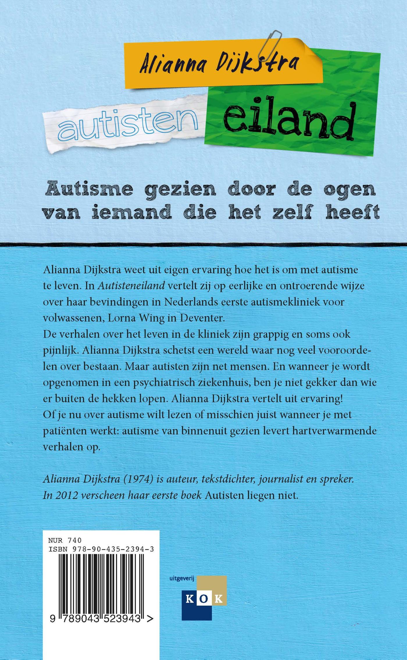 Het leven met autisme is verre van makkelijk. Dat geldt voor de omgeving, maar ook voor degene die autisme heeft. Daar weet Alianna Dijkstra alles van. Zij besloot zich te laten opnemen in Nederlands eerste autismekliniek voor volwassenen. In Autisteneiland vertelt zij met humor over haar ervaringen in de kliniek. Indrukwekkend maar ook luchtig, ondersteund met cartoons van Willeke Brouwer. Autisteneiland is interessant voor wie nog niet zo bekend is met autisme en een eyeopener voor wie met patiënten werkt of een familielid heeft met autisme.