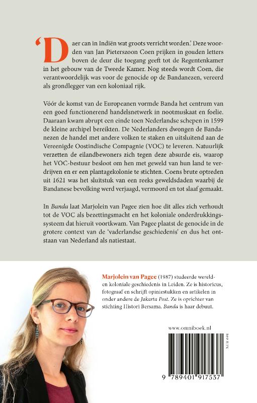 In Banda laat Marjolein van Pagee zien hoe dit alles zich verhoudt tot de VOC als bezettingsmacht en het koloniale onderdrukkingssysteem dat hieruit voortkwam. Van Pagee plaatst de genocide in de grotere context van de ‘vaderlandse geschiedenis’ en dus het ontstaan van Nederland als natiestaat.