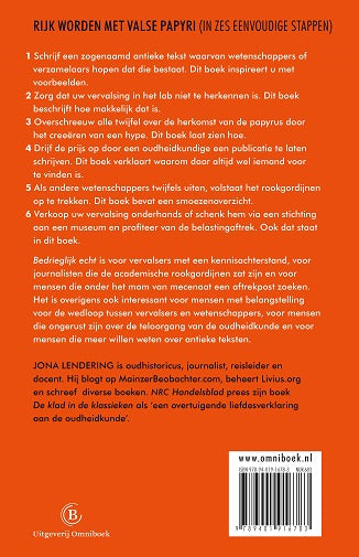 In Bedrieglijk echt beschrijft Jona Lendering de wedloop tussen wetenschap en vervalsers in de papyrologie. Veel romantischer dan papyrologie kan wetenschap niet zijn. In een ver land ontdekt iemand een antieke boekrol of wat snippers papyrus en ineens is daar een lang vergeten tekst. Vaak komen de papyri echter van de zwarte markt, zoals het Evangelie van de Vrouw van Jezus, dat enkele jaren geleden veel publiciteit trok. Hoewel binnen enkele dagen vaststond dat het ging om een vervalsing, erkende de onderzoekster dit pas toen de vervalser was opgespoord. Jona Lendering laat in Bedrieglijk echt zien dat fraudeurs kansen krijgen de wetenschap een loer te draaien door de zucht naar roem van wetenschappers.