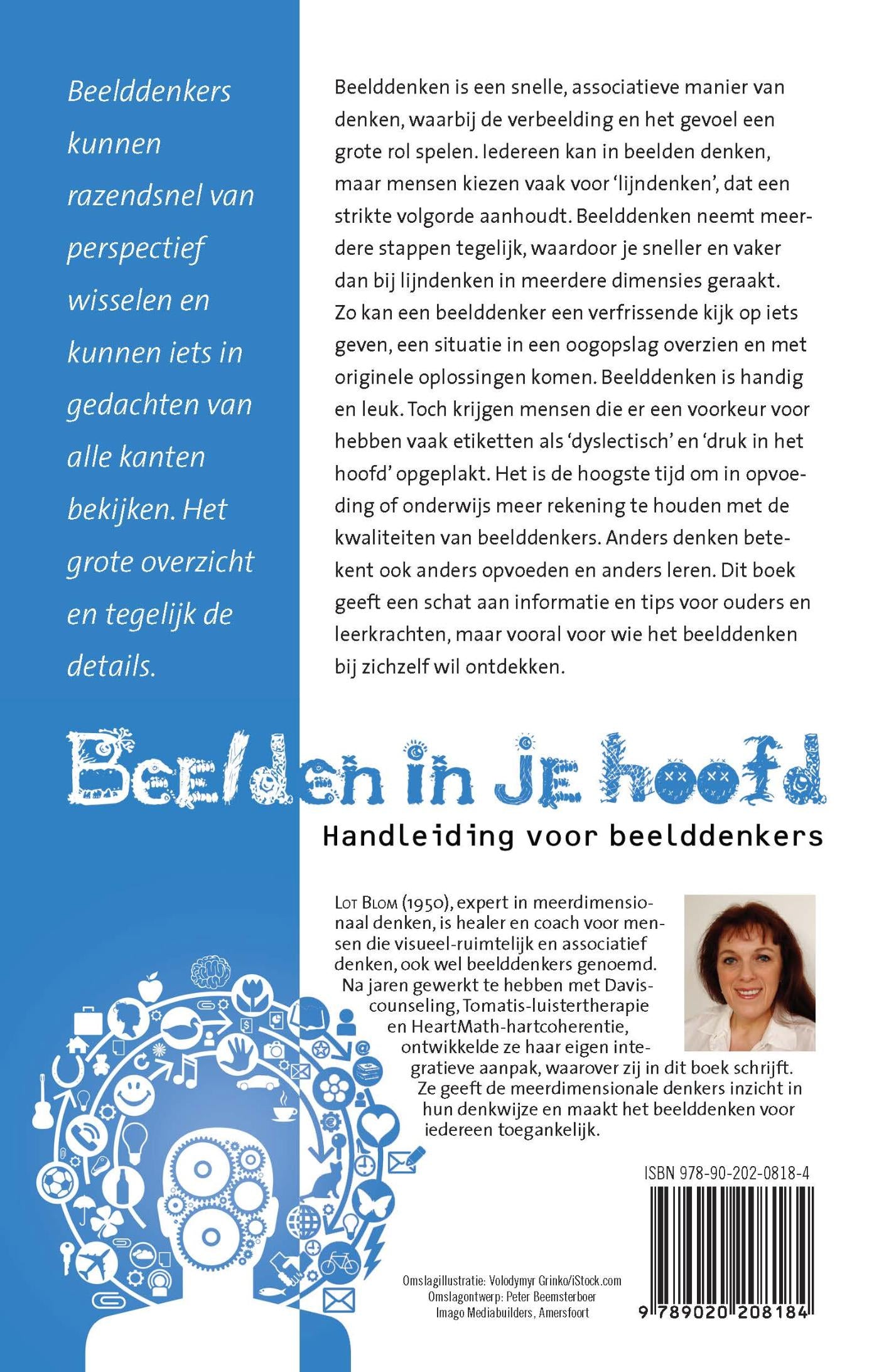 Beelddenken is een snelle, associatieve manier van denken, waarbij de verbeelding en het gevoel een grote rol spelen. Iedereen kan in beelden denken, maar mensen kiezen vaak voor `lijndenken , dat een strikte volgorde aanhoudt. Beelddenken neemt meerdere stappen tegelijk, waardoor je sneller en vaker dan bij lijndenken in de dimensie van tijd en ruimte geraakt. Zo kan een beelddenker een verfrissende kijk op iets geven, een situatie in een oogopslag overzien en met originele oplossingen komen. Beelddenken is handig en leuk. Toch krijgen mensen die er een voorkeur voor hebben vaak etiketten als `dyslectisch en `druk in het hoofd opgeplakt. Het is de hoogste tijd om in opvoeding of onderwijs meer rekening te houden met de kwaliteiten van beelddenkers. Anders denken betekent ook anders opvoeden en anders leren. Dit boek geeft een schat aan informatie en tips voor ouders en leerkrachten, maar vooral voor wie het beelddenken bij zichzelf wil ontdekken.