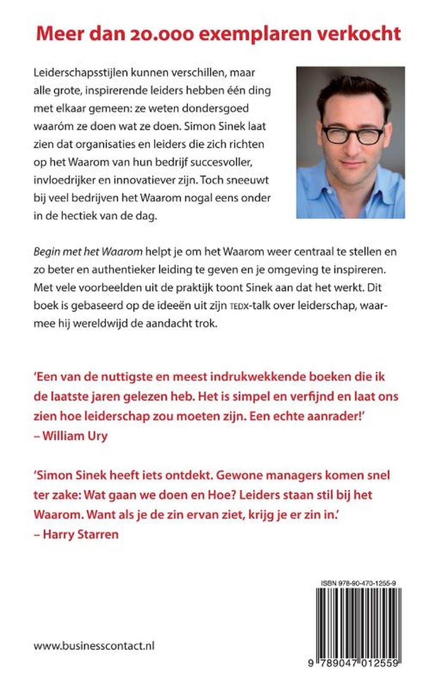 Toch sneeuwt bij veel bedrijven het Waarom nogal eens onder in de hectiek van de dag. Begin met het Waarom helpt je om het Waarom weer centraal te stellen en zo beter en authentieker leiding te geven en je omgeving te inspireren. Met veel voorbeelden uit de praktijk toont Simon Sinek aan dat het werkt.