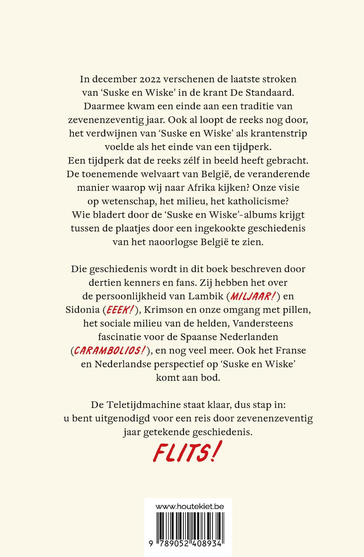 Die geschiedenis wordt in dit boek beschreven door dertien kenners en fans. Zij hebben het over de persoonlijkheid van Lambik (miljaar!) en Sidonia (eeek!), Krimson en onze omgang met pillen, het sociale milieu van de helden, Vandersteens fascinatie voor de Spaanse Nederlanden (carambolios!), en nog veel meer. Ook het Franse en Nederlandse perspectief op ‘Suske en Wiske’ komt aan bod. De Teletijdmachine staat klaar, dus stap in: u bent uitgenodigd voor een reis door zevenenzeventig jaar getekende geschiedenis. Flits!
