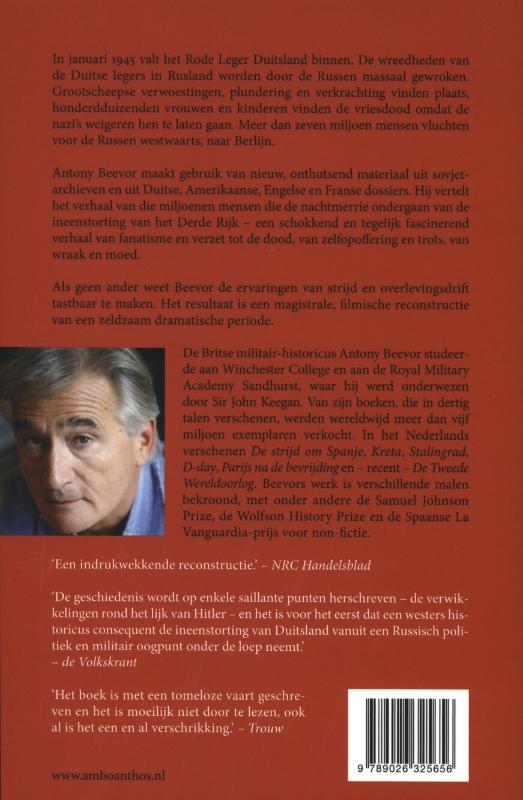 In januari 1945 valt het Rode Leger Duitsland binnen. De wreedheden van de Duitse legers in Rusland worden door de Russen massaal gewroken. Grootscheepse verwoestingen, plundering en verkrachting vinden plaats, honderdduizenden vrouwen en kinderen vinden de vriesdood omdat de nazi's weigeren hen te laten gaan. Meer dan zeven miljoen mensen vluchten westwaarts voor de Russen, naar Berlijn. Antony Beevor maakt gebruik van nieuw, onthutsend materiaal uit sovjetarchieven, uit Duitse, Amerikaanse, Engelse en Franse dossiers. Hij vertelt het verhaal van die miljoenen mensen die de nachtmerrie ondergaan van de ineenstorting van het Derde Rijk, een schokkend en tegelijk fascinerend verhaal van fanatisme en verzet tot de dood, van zelfopoffering en trots, van wraak en moed. Als geen ander weet Beevor de ervaringen van strijd en overlevingsdrift tastbaar te maken.