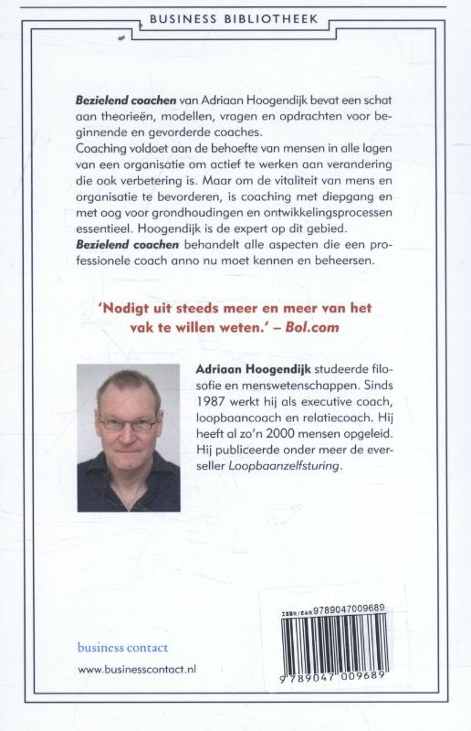 'Bezielend coachen' van Adriaan Hoogendijk bevat een schat aan theorieën, modellen, vragen en opdrachten voor beginnende en gevorderde coaches. Coaching voldoet aan de behoefte van mensen in alle lagen van een organisatie om actief te werken aan verandering die ook verbetering is. Maar om de vitaliteit van mens en organisatie te bevorderen, is coaching met diepgang en met oog voor grondhoudingen en ontwikkelingsprocessen essentieel. Hoogendijk is de expert op dit gebied. Bezielend coachen behandelt alle aspecten die een professionele coach anno nu moet kennen en beheersen.