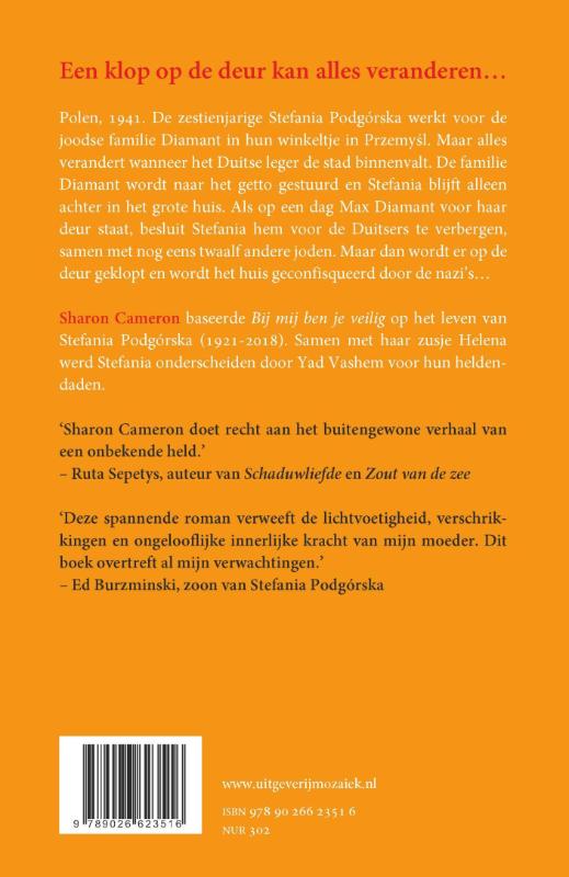 ‘Bij mij ben je veilig’ van Sharon Cameron is het waargebeurde verhaal van de jonge Stefania Podgórska, die tijdens de Tweede Wereldoorlog dertien joden op zolder verborgen hield, onder de ogen van de nazi’s.