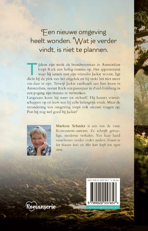 De familieroman 'Blijf niet omzien' van Marleen Schmitz gaat over Rick, die in zijn werk als brandweerman een heftig trauma oploopt. De plaats van het ongeluk ligt dicht bij het appartement dat hij met zijn vriendin Jackie deelt en hij merkt algauw dat hij het niet meer trekt om daar te blijven wonen. Hij besluit zijn leven in Amsterdam achter te laten en een pauzejaar te nemen in Zuid-Limburg. Terwijl zijn vriendin Jackie in de stad blijft, probeert Rick zijn verdriet te verwerken. Hij komt langzaam tot zichzelf, bouwt nieuwe vriendschappen op en leert wat hij echt belangrijk vindt. Past hij nog wel goed bij Jackie? Of groeit zijn vriendschap met de Limburgse Ellen onbedoeld uit tot meer?