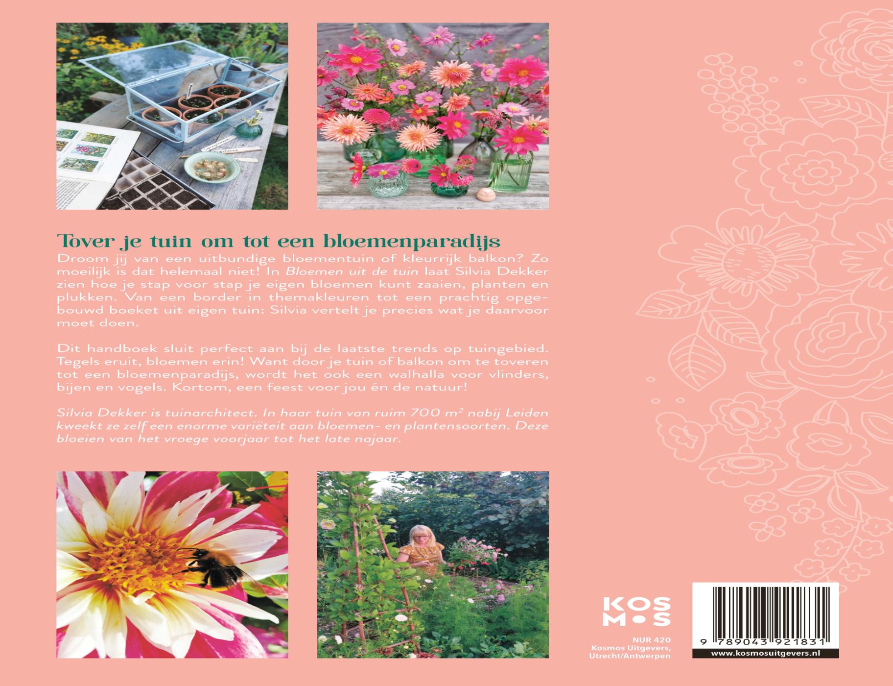 Bloemen uit de tuin van Silvia Dekker is het handboek voor iedereen die van zijn tuin of balkon een uitbundige bloementuin wil maken. Met de praktische tips van de tuinarchitecte is een weelderige bloementuin voor iedereen binnen handbereik. Of je nou een balkon, kleine stadstuin of grote lap grond bezit: Silvia helpt je deze om te toveren in een bloemenparadijs. Geniet van de bloemen in je tuin, maak een paradijs voor vlinders, bijen en vogels én word je eigen bloemist. Tegels eruit, bloemen erin!