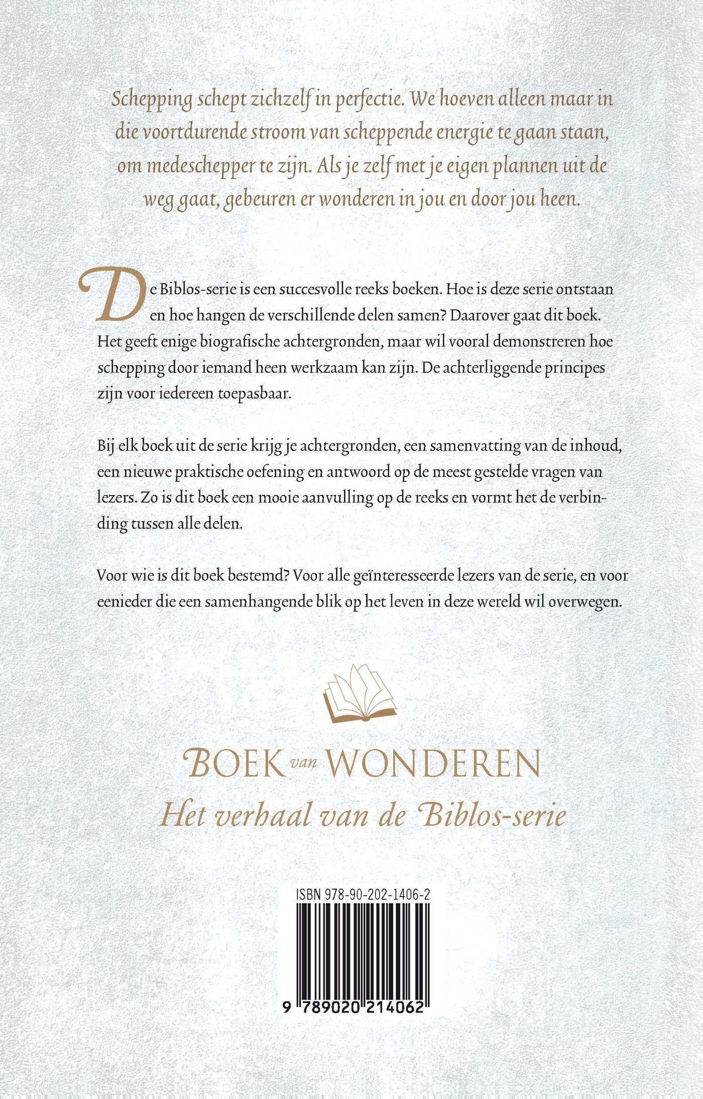 Wanneer je telkens je eigen plannen opgeeft voor iets beters, ontstaan er wonderen. De Biblos-serie bestaat uit: ' Boek van de Universele Wetten', 'Boek van de Levensmissie', 'Boek van Vergeving', 'Boek van het Zelf', 'Boek van het Eeuwige Leven', 'Boek van het Licht en de Liefde'.
