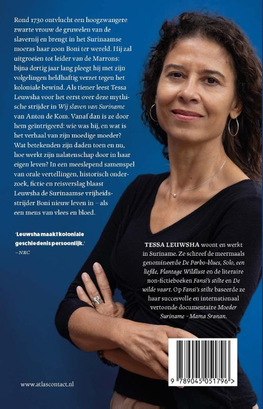 Als tiener leest Tessa Leuwsha voor het eerst over deze mythische strijder in Wij slaven van Suriname. Vanaf dan is ze door hem geïntrigeerd: wie was hij, en wat is het verhaal van zijn moedige moeder? Wat betekenden zijn daden toen en nu, hoe werkt zijn nalatenschap door in haar eigen leven? Tessa Leuwsha reist door Suriname en zoekt naar Bonis wortels in Ghana, ze spit door de schaarse archieven en put rijkelijk uit orale geschiedenis. Gebaseerd op feiten en ondersteund door haar sprankelende literaire verbeeldingskracht herschept ze de Surinaamse vrijheidsstrijder Boni als mens van vlees en bloed.