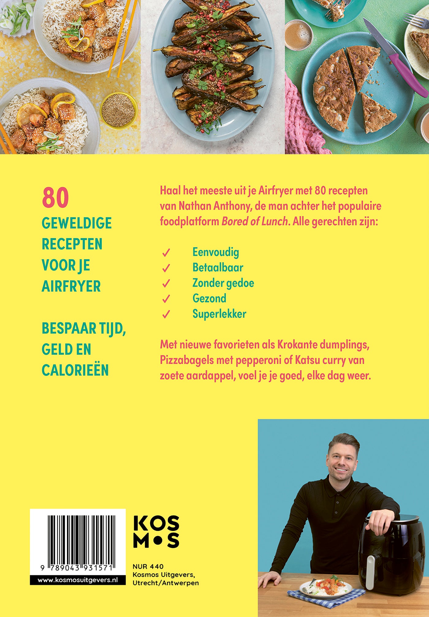 Haal alles uit je airfryer met de 80 recepten van Nathan Anthony, de man achter het populaire foodplatform Bored Of Lunch. De recepten in Het Gezonde Airfryer Boek zijn op maat gemaakt voor wie lekker en gezond eten wil dat binnen een mum van tijd op tafel staat.