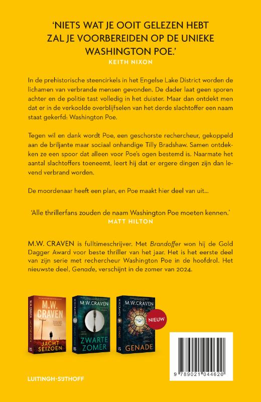 In het Engelse Lake District blijkt een seriemoordenaar mensen levend te verbranden in prehistorische steencirkels. Hij laat geen sporen achter en de politie heeft geen enkele aanwijzing. Dan ontdekt men dat er een naam gekerfd staat in de verkoolde overblijfselen van het derde slachtoffer: Washington Poe. Tegen wil en dank wordt Poe, een geschorste detective, gekoppeld aan een briljante maar sociaal onhandige partner, Tilly Bradshaw. Samen ontdekken ze een spoor dat alleen voor Poe’s ogen bestemd is.